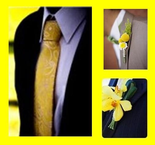 Anche per lo sposo saranno piccoli dettagli a richiamare il giallo come la cravatta o un fiore all’occhiello.