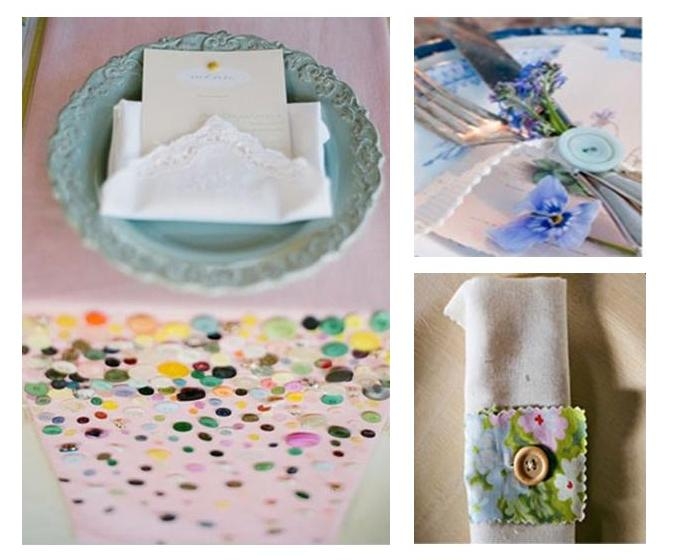 Lo stesso sulla tavola. Cucite un bottone ai portatovaglioli o applicate una cascata di bottoncini colorati al table runner. Oppure più semplicemente potete spargere dei bottoni sul tavolo, attorno al centrotavola.